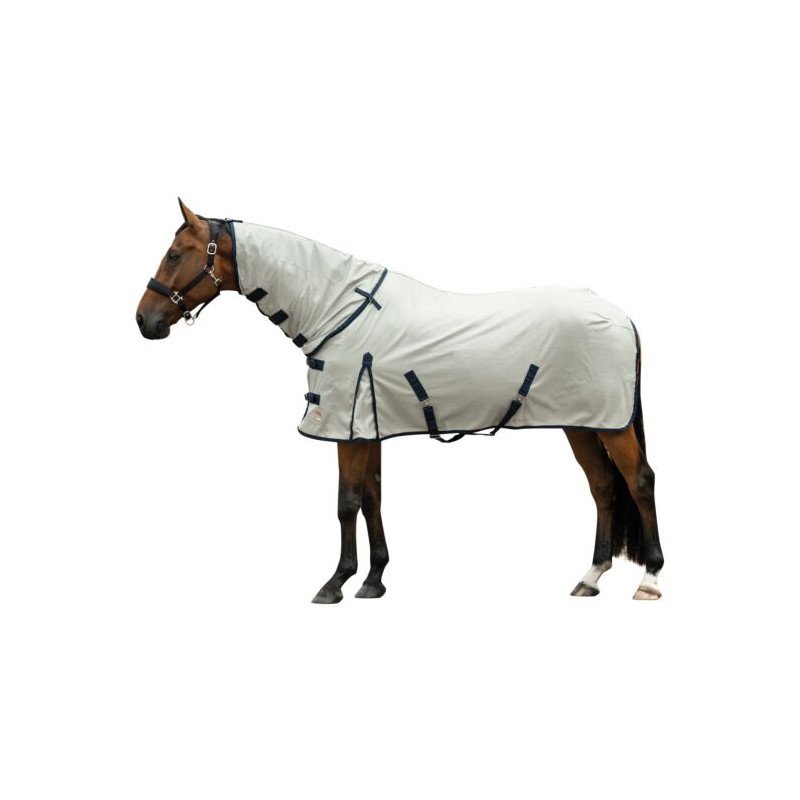 Die Fliegendecke Rain II mit abnehmbarem Halsteil bietet zuverlässigen Schutz vor Fliegen und Insekten und ist zudem stark wasserabweisend - ideal für wechselhaftes Wetter. Dank der integrierten Zwickel, elastischen Beinschnüre und Kreuzgurte bietet sie dem Pferd optimale Bewegungsfreiheit. Der Schweiflatz und der Schweifriemen bieten zusätzlichen Halt. Das Halsteil lässt sich mit Klettverschlüssen sicher am Zaumzeug oder Halfter befestigen und bei Bedarf abnehmen. Ein weiches Nylonfutter im Brustbereich verhindert Scheuerstellen. Mit hoher Reißfestigkeit und schlichtem Design verbindet diese Decke Funktionalität und Komfort.