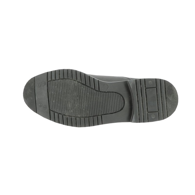 Boots en cuir de vachette, doublure 100% polyester. Semelle en TPR. Fermeture à zip à l'avant avec un bouton pression et soufflets élastiqués sur les côtés.