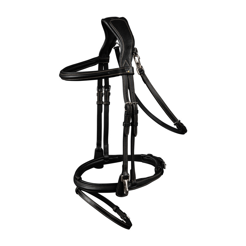 - Doublure moelleuse sur la muserolle, le frontal et la têtière