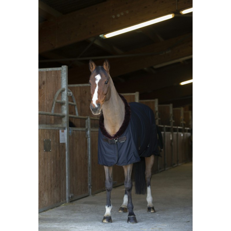 Chemise séchante permettant l'évacuation rapide de la transpiration, idéale après le travail ou la douche. Elle s'adapte parfaitement à la morphologie de votre cheval, grâce à ses sursangles croisées, sa fermeture de poitrail en mâle/femelle, sa doublure nylon au niveau du poitrail et surtout à son collier en mouton synthétique Teddy. Composition : 100 % polyester.