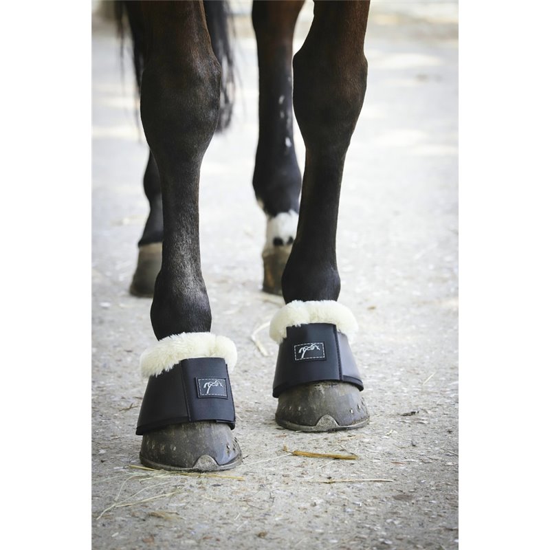 Cloche Pénélope en polyuréthane, doublé de néoprène. Bord montant recouvert de mouton synthétique. Fermeture par bande auto-agrippante.