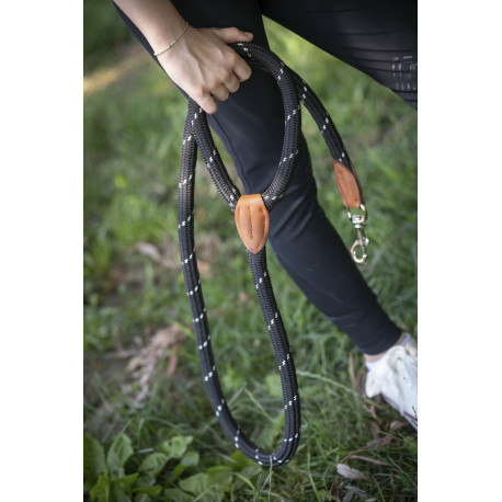 Une laisse comme une longe de licol composé d'un mousqueton et d'une poignée très pratique pour une bonne prise en main.