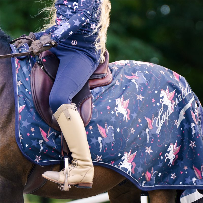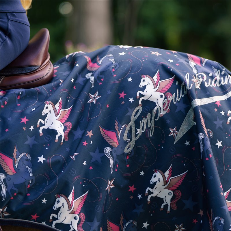 Couvre-reins léger, luxueux et super-dry. Le couvre-reins a une doublure en polaire, est imperméable et donc parfaitement adapté aux froid et aux jours de pluie. La couverture est dotée d'une fermeture velcro au garrot, d'un bel imprimé Pandora unique en son genre et d'un long rabat de queue protecteur.
