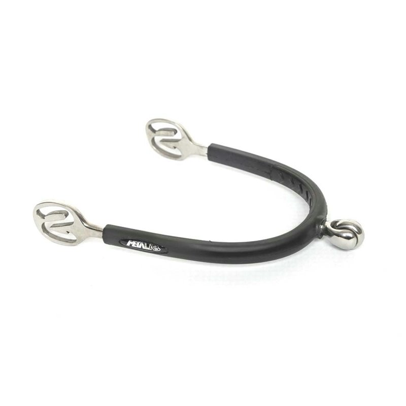 En inox recouvert de caoutchouc soft touch, avec molette ronde, éperons SS.