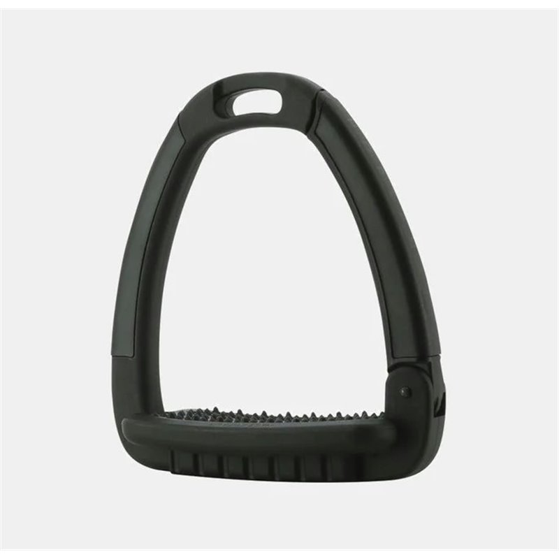 Fabriqués avec des matériaux de haute qualité, les étriers de sécurité Swap de chez HORSENA sont conçus pour assurer confort et sécurité. Le bras latéral avec une ouverture de 90° est destiné à libérer le pied en cas de chute. L’oeil légèrement orienté permet une position naturelle de la jambe. La semelle anatomique avec une inclinaison de 5° aide à maintenir le talon vers le bas et sa forme ergonomique favorise la position correcte du pied au centre de l'étrier. Les trous dans la semelle, combiné à la structure 3D, garantit une adhérence optimale et une expulsion rapide de la saleté.