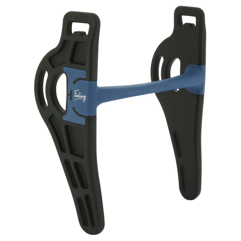 Mors Pelham à embouchure droite, composé en matière plastique innovante et non allergène, au lieu d'un métal pesant et/ou froid, ou d'un alliage de métaux.