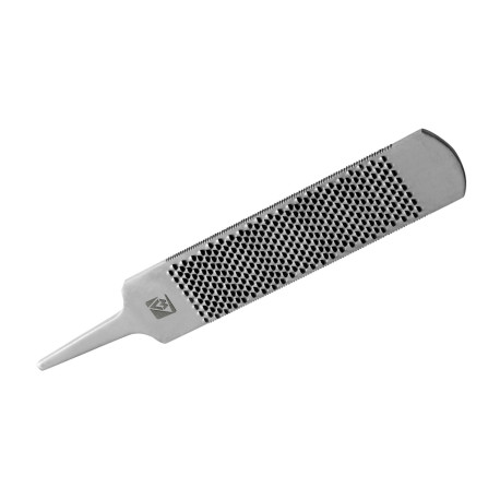 Taille compacte, idéal pour les randonnées, les courses et compétitions. Cette râpe comporte également un côté lime pour des finitions. Manche classique en plastique s'emmanchant facilement. Poids sans manche : 610 g.