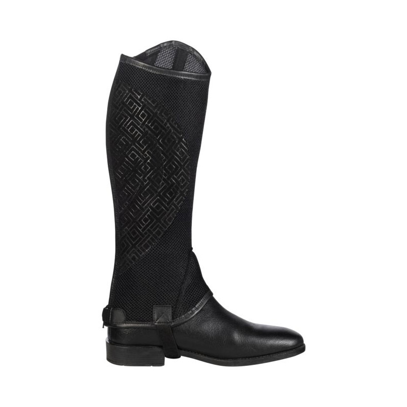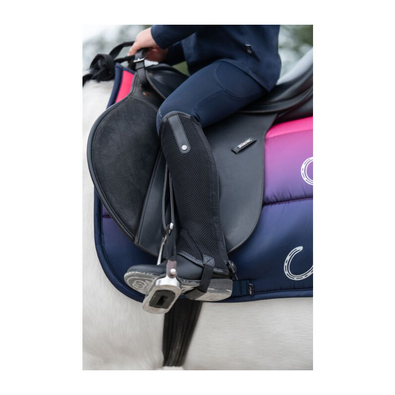 Les mini chaps  Lara enfants sont entièrement fabriquées en mesh respirant et constituent donc une alternative aux cavalières en cuir ou en cuir synthétique imperméables à l'air, en particulier en été. L'intérieur de ces bottes d'équitation, également appelées chaps, est recouvert d'une grande surface de silicone qui assure une bonne adhérence à la selle. À l'arrière, les cavalières se ferment à l'aide d'une fermeture à glissière qui est sécurisée par un bouton-pression. Les cavalières Lara existent également en version enfant - celle-ci est disponible sous la réf. Vous la trouverez sous la référence 14578.