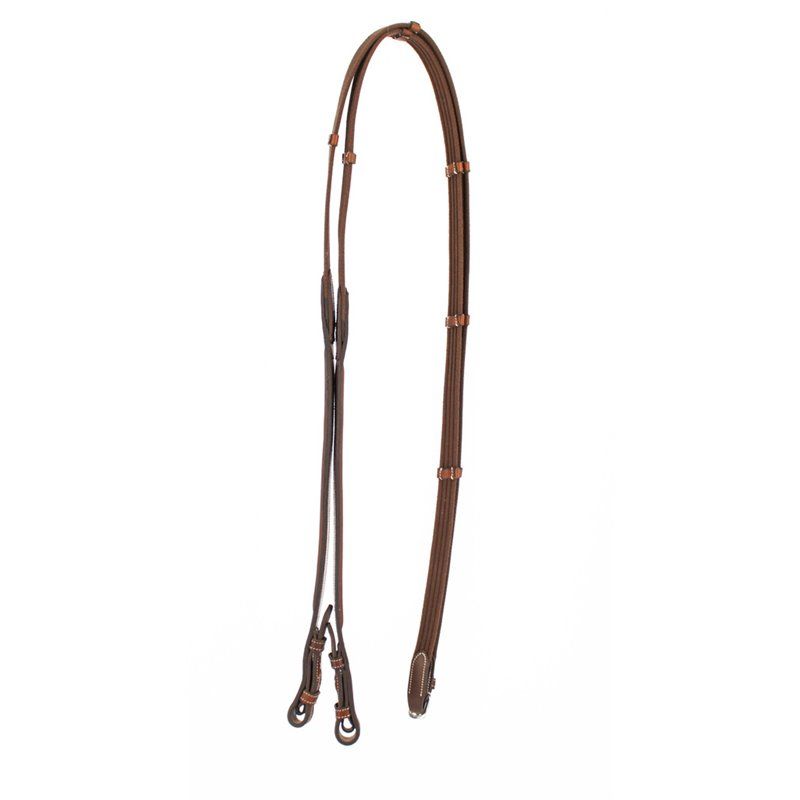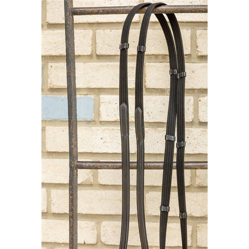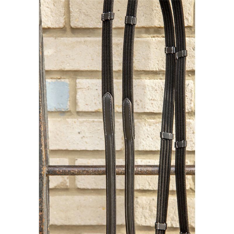 Rênes sangle assorties au bridon luxe, équipée d'arrêtoirs en cuir et d'arrêtoirs de martingale.