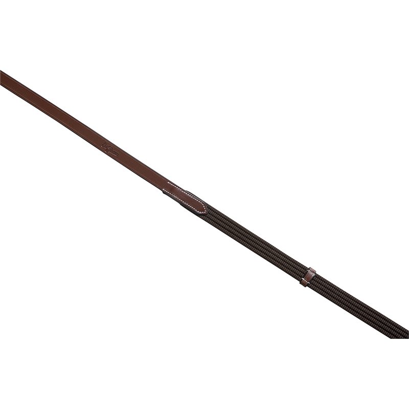A crochets, avec 5 arrêtoirs en cuir et surpiqûres blanches.